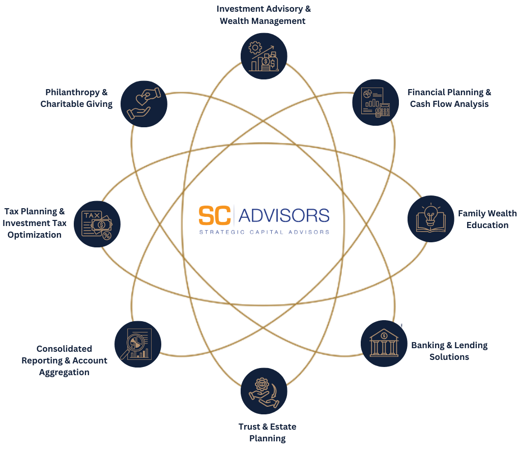 At Strategic Capital Advisors, we believe your tax picture and your investment strategy must be designed together. Every allocation decision, every account structure, every transaction is evaluated through a tax lens first.